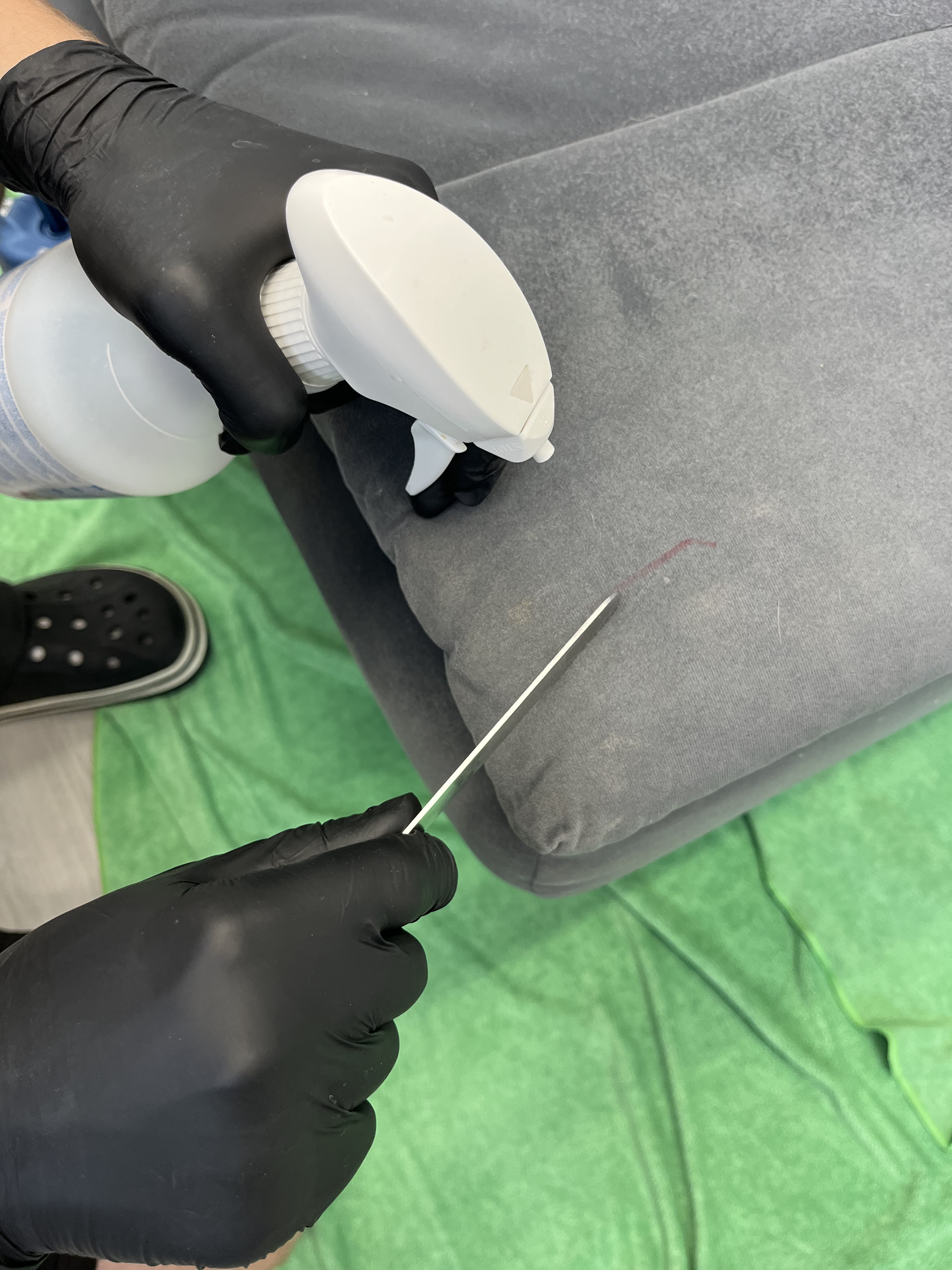 На этом этапе работаем с водонерастворимыми пятнами (краска, клей, чернила), которые нужно удалить до основной чистки